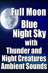 Full moon blue night sky with thunder and night creatures ambient sounds