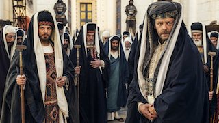 In the season finale, the arrival of Caligula's statue in Jerusalem attracts the people to the battleground of the temple, violence divides the Jews, and Cornelius converts to Christianity.